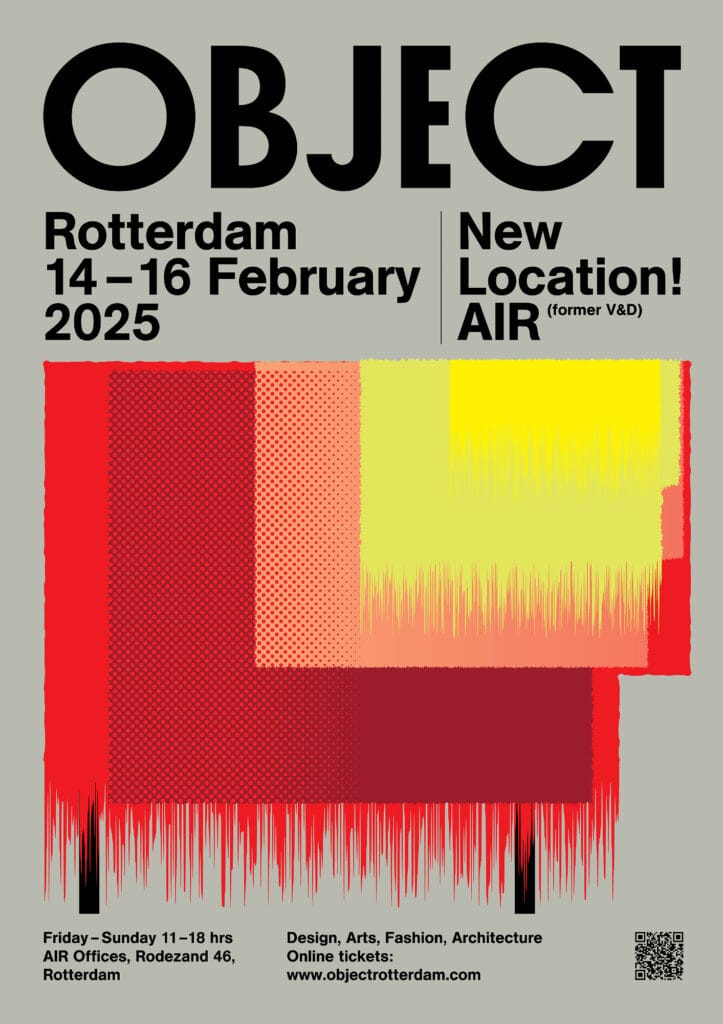 De voormalige V&D in het centrum van Rotterdam vormt van 14 tot en met 16 februari het decor voor honderden designstukken, textielkunstwerken, lichtobjecten, meubels, sieraden en meer. Na een aantal edities in het HAKA-gebouw neemt OBJECT nu haar intrek in weer een bijzonder pand. Deelnemers reageren enthousiast op de nieuwe locatie die zich in het hart van de stad, aan het begin van de Koopgoot, bevindt. Maar liefst twee verdiepingen van het gebouw worden deze editie opengesteld, goed voor meer dan 10.000 meter tentoonstellingsruimte. “We zien opvallend veel nieuwe aanmeldingen, maar ook designers van het eerste uur die weer deelnemen zoals Jeroen Wand, APTUM, Inge Simonis en Kars+Boom”, zegt Anne van der Zwaag de directeur van OBJECT. Bij de selectie is het multidisciplinaire karakter van de beurs bepalend. Zowel zelfstandige makers, merken als galeries doen aan deze editie in AIR mee.